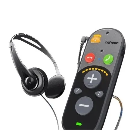 The device includes tinnitus sound therapy, an emergency call button, and Easy Listen™ technology for slowed speech during calls. Supplied with both supra-aural headphones and earbuds, its rechargeable lithium-ion battery lasts up to 48 hours per charge.