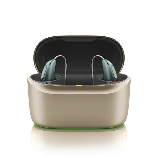 Phonak Audeo Infinio Sphere combines AI-powered noise reduction with Bluetooth 5.3 and rechargeable batteries for superior speech clarity in challenging environments.
