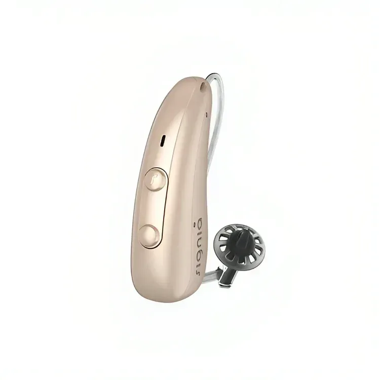 World’s smallest rechargeable prescription hearing aid with invisible design, advanced noise separation, and no custom earmold requirement.